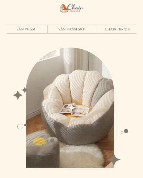Ghế decor cao cấp là lựa chọn hoàn hảo giúp nâng tầm không gian sống với thiết kế hiện đại, tinh tế. Sản phẩm đa dạng kiểu dáng như ghế lười, ghế sofa mini, phù hợp trang trí phòng khách, phòng ngủ, quán cafe hay homestay. Chất liệu bền đẹp, êm ái, mang lại cảm giác thoải mái khi sử dụng. Ghế decor không chỉ là nội thất mà còn là điểm nhấn thẩm mỹ, giúp không gian trở nên sang trọng và ấn tượng hơn.